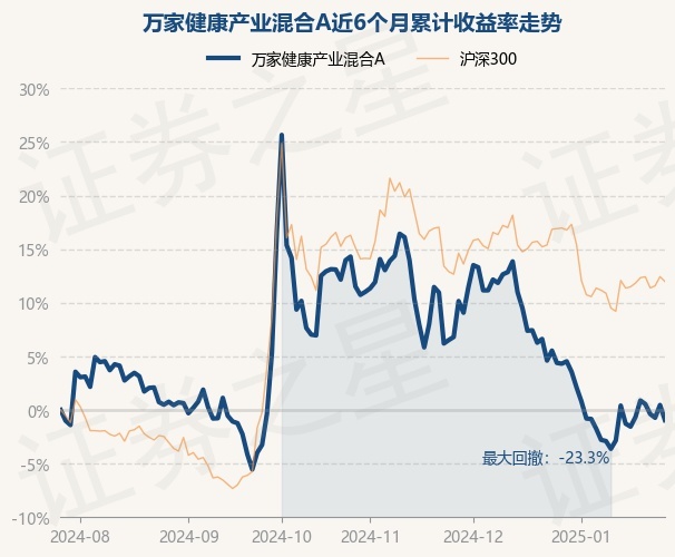 本站消息,1月27日,万家健康产业混合A最新单位净值为0.6835元,累计净值为0.6835元,较前一交易日下跌1.4%。历史数据显示该基金近1个月下跌5.24%,近3个月下跌13.08%,近6个月下跌0.94%,近1年下跌19.79%。该基金近6个月的累计收益率走势如下图: